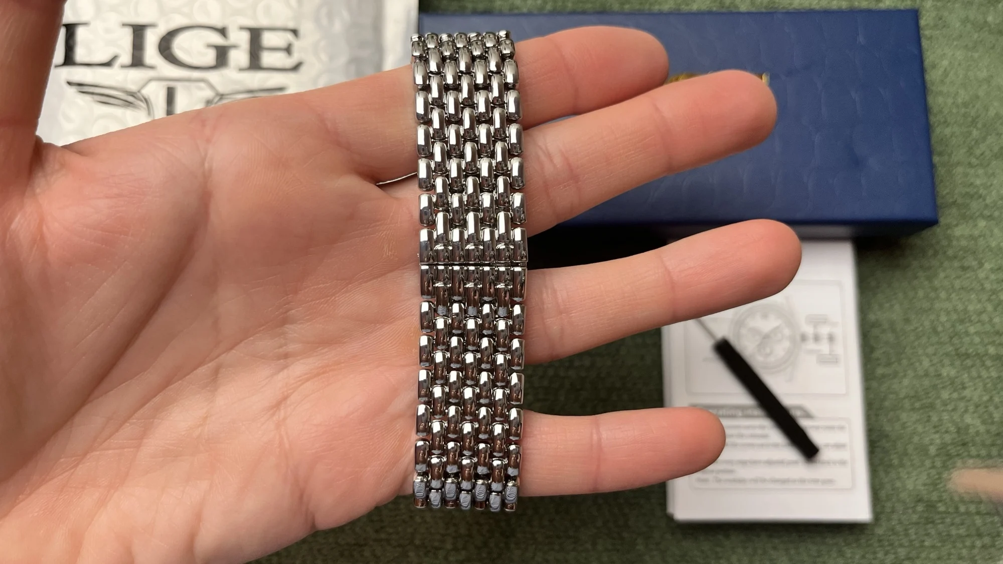 The polished metal bracelet fits comfortably on the wrist while offering a high-end look that elevates your everyday style.